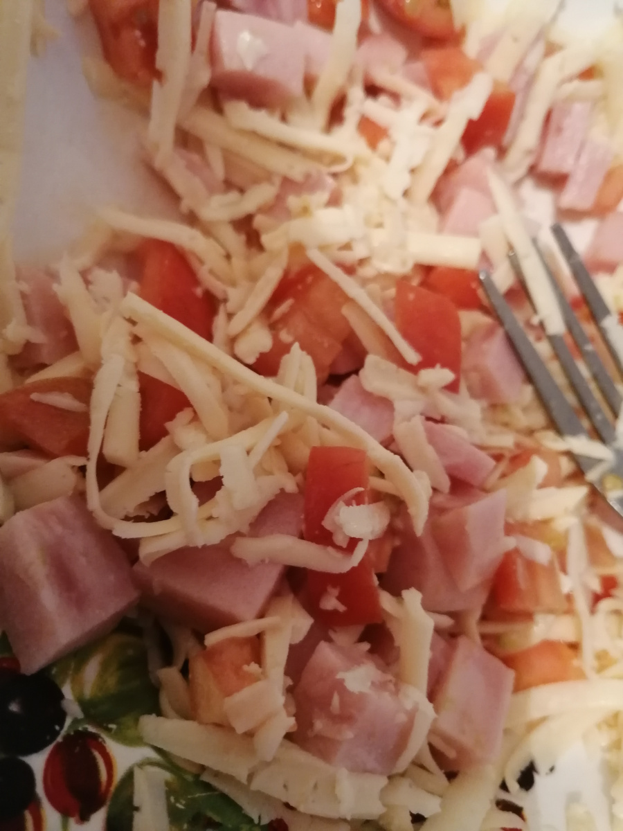 Вам понадобится: 1. Лаваш = 1 упаковка (квадратный). 2. Помидоры = 2 шт. (средние). 3. Ветчина (колбаса) = 200 гр. 4. Сыр = 200 гр. 5. Яйца = 3 шт. 6. Соль = по вкусу. Приготовление: 1. Нарезаем кубиками помидоры и ветчину. 2. Сыр трём на большой терке. 3. Смешиваем все вместе. 4. Начинку распределяем по всему лавашу, сворачиваем в рулет и нарезаем на кусочки. 5. Яйца взбиваем с солью. 6. Обмакиваем каждый рулетик в яйце и обжариваем на сковороде на растительном масле с двух сторон. /приятного аппетита/