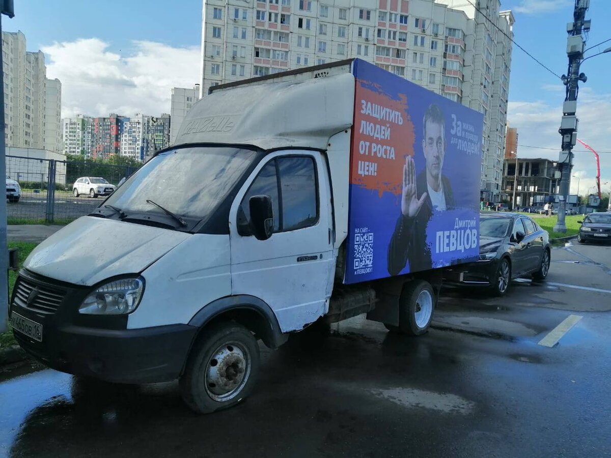 Грузовики Певцова с виниловыми баннерами на парковках и дорогах СВАО
