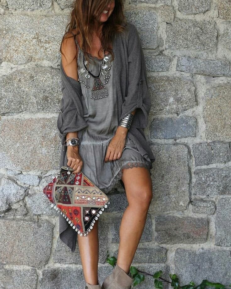 БОХО - СТИЛЬ Чувство стиля — это умение сочетать казалось бы несочетаемые вещи, грубость и нежность, строгость и простату. Это не просто стиль одежды это то что глубоко в душе, то что создает неповторимость, элегантность в казалось бы невероятных сочетаниях вещей. Это то что выделяет и делает неповторимым, это выражение чувств, выражения характера, выражение настроения и нежности, это одно целое человек и Бохо. Этот стиль, дает отличный повод для самых смелых экспериментов. КАКОЙ ОН, СТИЛЬ БОХО? Люди умеющие носить стиль Бохо это люди обладающие невероятным чувством баланса, умением чувствовать границу где нужно остановиться либо добавить что то еще. Многослойные юбки, сарафаны, небрежно накрученные шарфики, умопомрачительные сочетания мешковины и шифона, меха и кружев, льна и шерсти. Вязаные крючком аксессуары, объемные сумки, обувь на плоской подошве. Исключительно натуральные материалы. металлическая бижутерия, монисты, крупные бусы и кулоны, длинные серьги. Чем больше, тем лучш