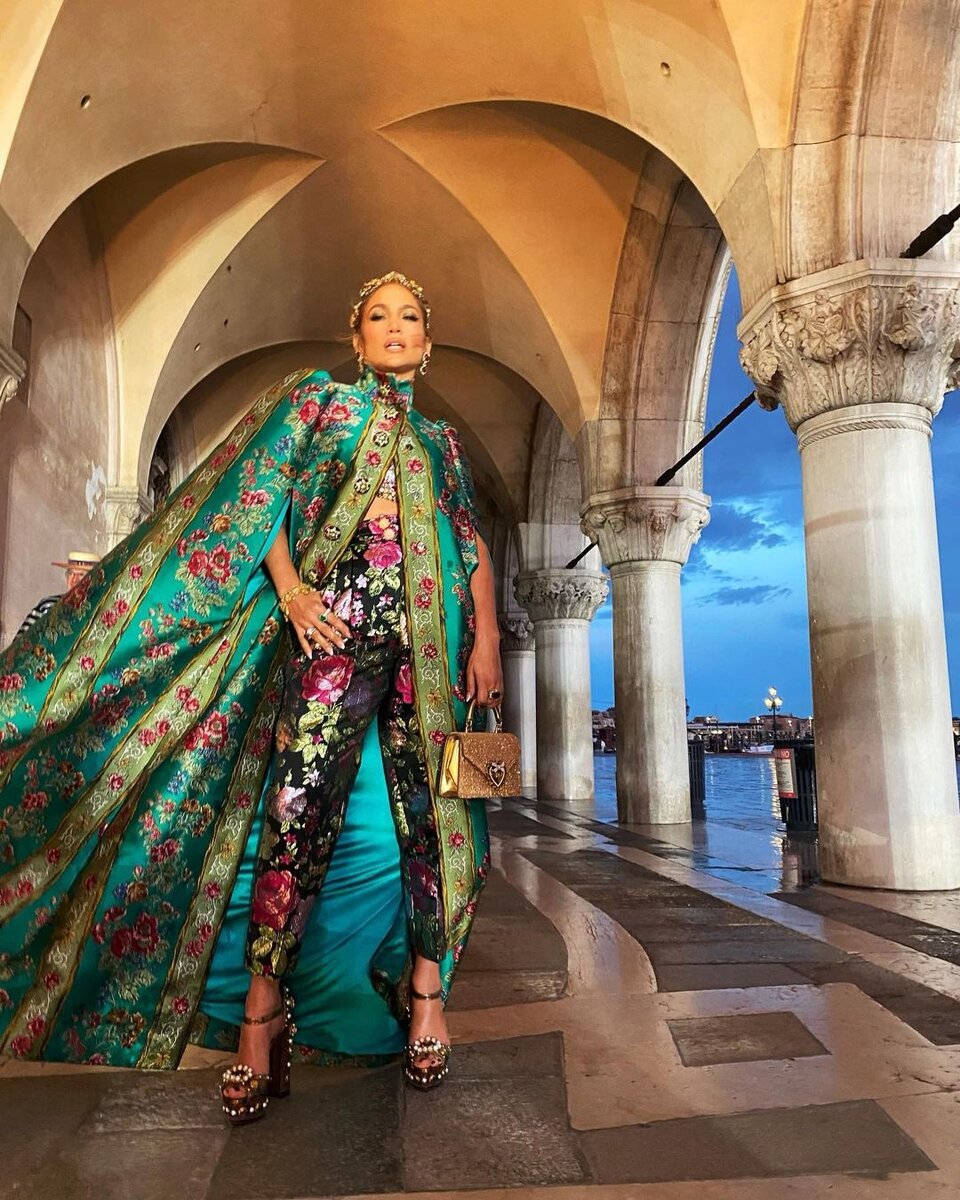 Цветы, парча, каменья: королевский образ Дженнифер Лопес на шоу Dolce & Gabbana в Венеции