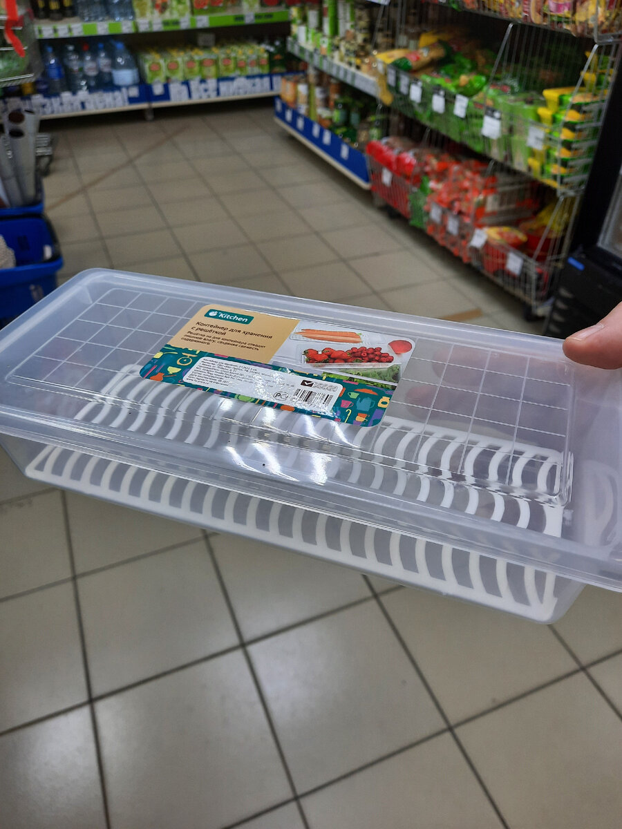 Контейнер поможет удалить излишки воды и сохранить свежесть продуктов. Он компактный и при хранении в холодильнике, можно ставить один на другой, что очень экономично.
