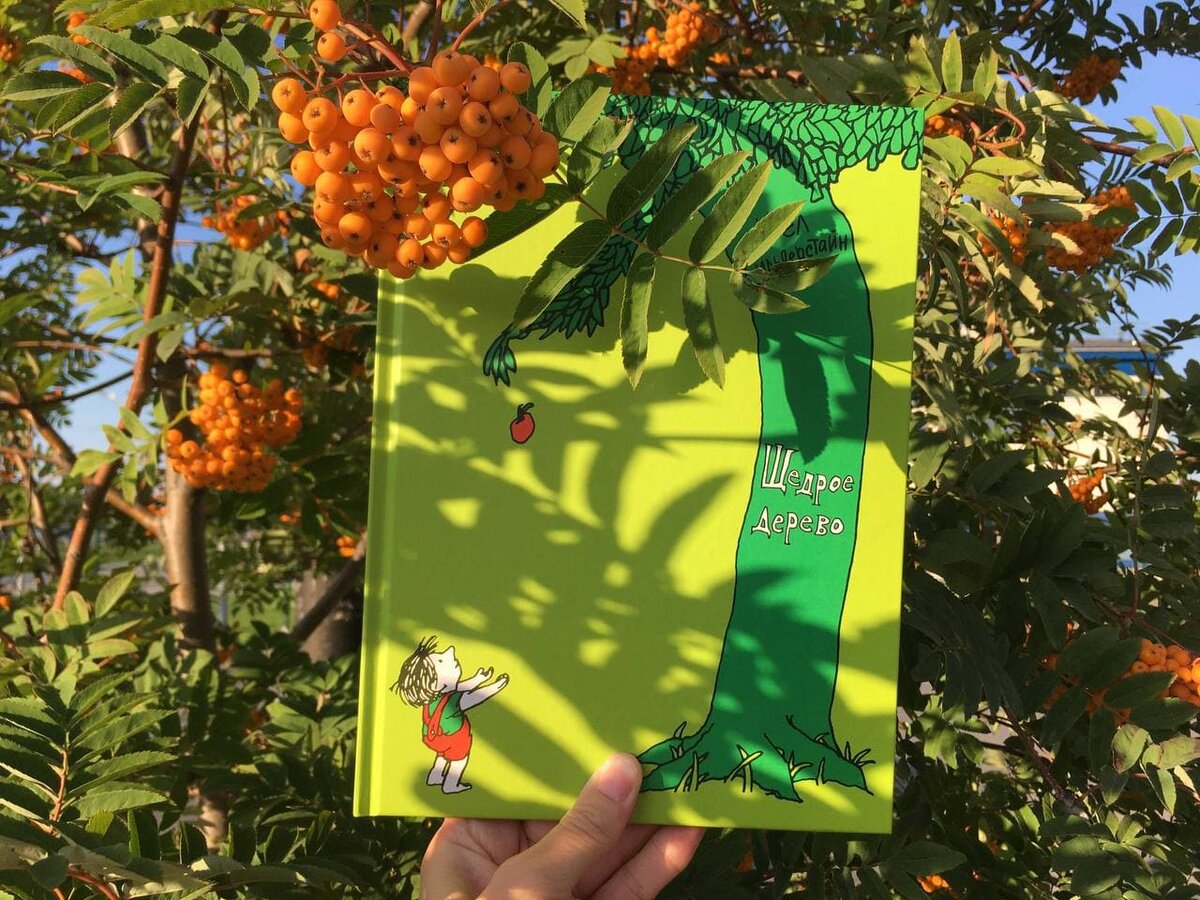 У многих родителей до сих пор критерием хорошей книги является количество букв. Ну или хот бы наличие картинок на весь разворот. Мало текста? Много пространства? Халтура! Но это не так работает. Много «воздуха» помогает включить воображение у ребёнка, а лишь одна фраза на разворот добавляет вес заложенному смыслу. Книга Шела Сильверстайна «Щедрое дерево» без цветных картинок (как и все его книги), но на каждом развороте ребёнок подметит изменения: мальчик растёт, яблоня скрещивает ветки, будто руки на животе. Книга о любви, когда готов отдать всё, но ничего не требуешь взамен. И у меня однозначная ассоциация: мальчик — ребёнок, дерево — родитель. Я всякий раз дочитываю историю с комом в горле и слезами на глазах (если читаю про себя, а если дочкам вслух, то вообще говорить в конце не могу). Дети и правда ничего не должны своим родителям, а задача родителей — помочь детям найти себя в жизни и стать счастливыми. Но мне всё же бесконечно грустно, что мальчик вырос в мужчину, а потом и пре