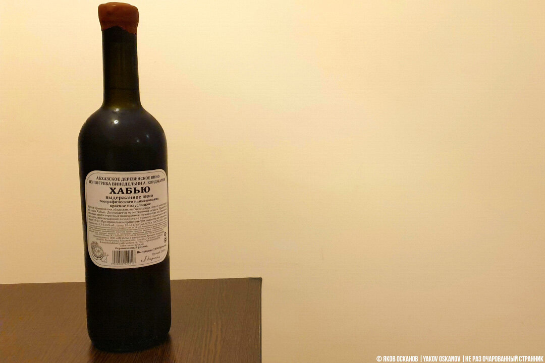 Сейчас я пью вина редко и в основном сухие. Но было время, когда я употреблял их значительно чаще и очень любил грузинские "Хванчкару" и "Киндзмараули". Да и сейчас, иногда, под настроение, хочется выпить бутылочку полусладкого. Но с "Хванчкарой" бизнес сыграл злую шутку. Вино, действительно, выдающееся. Но! Оно производится из редких автохтонных сортов винограда Александроули и Муджуретули, произрастающих в микрозоне Хванчкара. Чтобы сделать его более массовым, эту же технологию воспроизвели с сортом Саперави и получили "Киндзмараули". Но и тут массовым продукт не стал. Так как "Киндзмараули" – тоже микрозона и настоящее вино, что Хванчкара, что Киндзмараули, уже давно законтрактовано на экспорт. И не в "Пятёрочку" и не в "Красное и белое". Абхазские же заводские вина, такие как "Апсны" и, особенно, "Лыхны", далеки от той советской "Хванчкары", которую мне довелось пробовать. Но тут судьба хитро подмигнула мне, и подсунула на полку местного магазинчика вино из частной винодельни. На