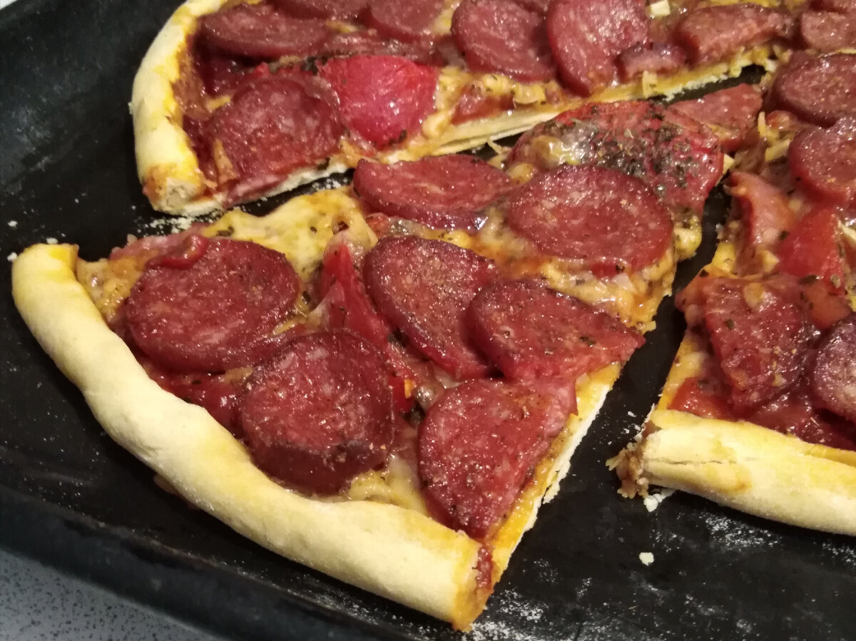 Пицца с колбасой, помидорами и сыром: готовлю итальянскую пепперони дома в духовке всего за полчаса! Делюсь рецептом.