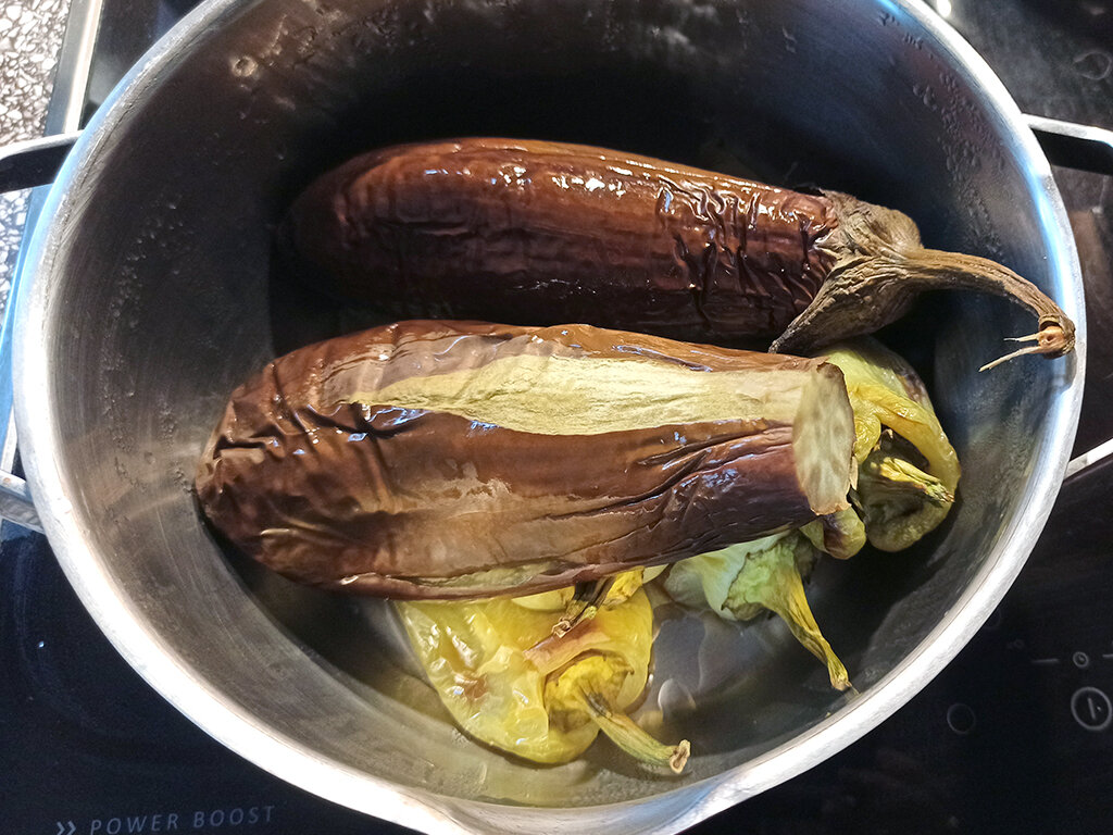 "Мам, зачем мудришь!", сказал сын. Но потом согласился, что икра из запечённых баклажанов кусочками получается вкуснее