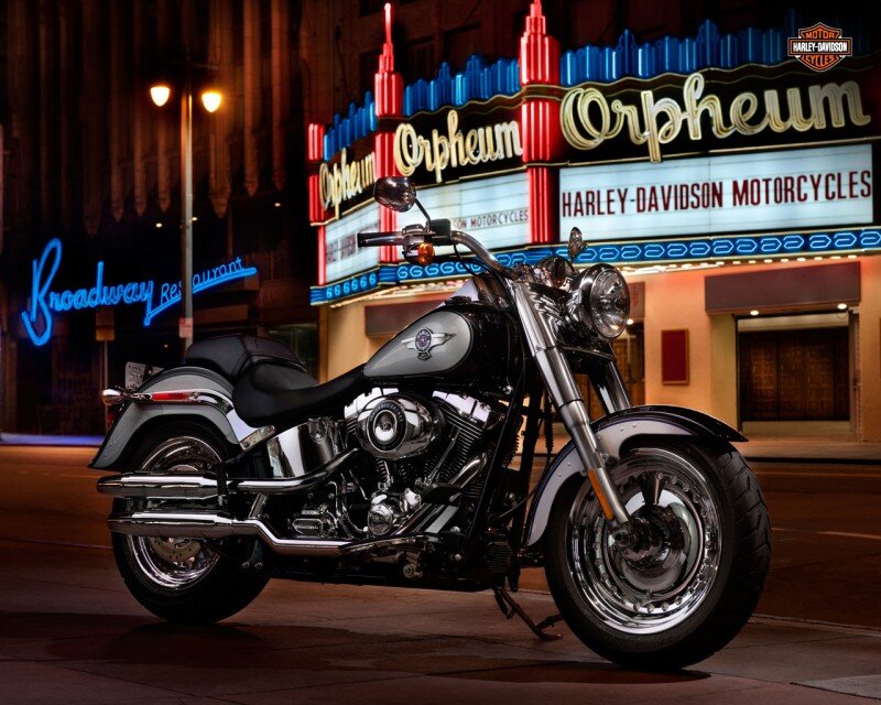 Культовый Fat Boy – бесспорно, один из самых узнаваемых и почитаемых мотоциклов марки Harley-Davidson, особенно прославившийся после «роли» в боевике «Терминатор 2: Судный день». Тогда, в начале 90-х, когда кинокартина Джеймса Кэмерона только вышла на экраны, кто из мужчин не желал быть похожим на брутального Арни и какой мальчишка не мечтал «когда вырасту, обязательно куплю себе Harley! Принято считать, что мотоцикл получил название в честь двух атомных бомб, сброшенных американским бомбардировщиком на Хиросиму и Нагасаки – «Толстяк» (Fat Man) и «Малыш» (Little Boy). На баке оригинального Fat Boy с обеих сторон красовалась звезда с крыльями – эмблема ВВС США. На бомбе «Толстяк» были нарисованы желтые круги – и на модели FLSTF первого поколения желтый цвет тоже присутствует, причем в семи разных местах. А дизайн сплошных колесных дисков мотоцикла во многом похож на таковые… у стратегического бомбардировщика B29 Superfortress! Еще сильнее это сходство проявилось в 2007 году, когда колес