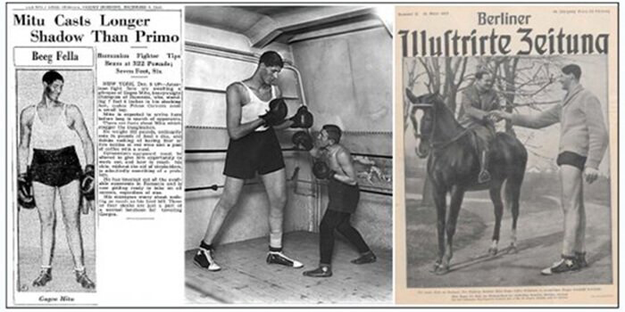 Гогеа Миту был самым высоким румыном, когда-либо зафиксированным в современной истории. Его рост составлял 2,5 метра, что вскоре сделало его международным феноменом. Однако, не дождавшись еще большей славы, он умер при загадочных обстоятельствах. Он родился в начале 20 века, а именно в 1914 году, недалеко от Крайовы, уезд Долж, Румыния. Несмотря на черты гиганта, он был здоров как бык. Он самостоятельно начал учиться читать и писать. Когда ему было 10 лет, он уже не мог поместиться за школьной партой. В семнадцать лет Гогеа поступил в бухарестский цирк "Глобус", где с легкостью сгибал стальные прутья под безусловное восхищение публики. В 1934 году итальянский боксер Умберто Ланча наткнулся на гиганта и предложил ему свои услуги в качестве менеджера. После того как Гогеа окончил школу бокса в Париже, он начал заниматься этим видом спорта, который принес ему огромный успех. Никто не мог победить Гогеа Миту, только немец Бергам был достойным соперником гиганта, так как сам был