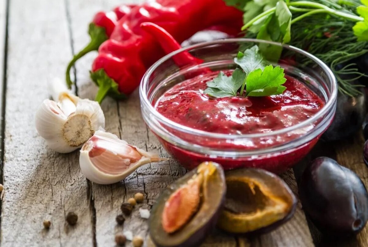 Я долгое время всех подруг убеждала делать домашние соусы! Ведь это так просто, нереально вкусно и совершенно безвредно, в отличие от магазинных химических кетчупов и майонезов. Один раз сварила и потом ем соус всю зиму! Я каждую осень готовлю домашний кетчуп, аджику, ткемали и иногда сацебели. Домочадцам они очень нравятся! В какой-то момент мне удалось вдохновить своих приятельниц на создание соусов. И что вы думаете? Сейчас они уже делятся со мной своими рецептами! Поэтому тоже очень советую наготовить на зиму вкусностей, не пожалеете! Читайте статью до конца и пишите в комментариях о своих любимых рецептах! =) Рецепт соуса ТКЕМАЛИ: 1) Промойте сливы, погрузите в большую кастрюлю, залейте водой и доведите до кипения. Варите на среднем огне около 8 минут; 2) Достаньте блендер, выложите туда зелень, перчик и чеснок. Перемелите пряности в кашицу; 3) Откиньте сливы на дуршлаг, подождите, когда стечет вода. Отделите кожицу и косточки от слив. Перетрите сливы в пюре с помощью ложечки или