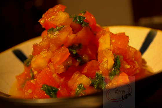 Тем, кто любит мексиканские блюда, рекомендуется приготовить вкуснейшую томатную сальсу с кинзой и лаймовым соком, которую можно подавать в качестве пикантной закуски с горячими пшеничными тостами, а также запеченной курицей. Ингредиенты: - салатный белый лук (48 г); - морская соль (по вкусу); - крупный стручок свежего чили перца (одна штука); - оливковое масло (53 мл); - чеснок (48 г); - черный перец измельченный (8 г); - помидоры (540 г); - листья свежей кинзы (25 г); - лаймовый сок свежевыжатый (28 мл). Процесс приготовления: От шелухи очистить чеснок и салатный лук, промыть их в прохладной воде и очень мелко порубить. Тонко нашинковать промытую зелень, переложить ее вместе с остальными измельченными ингредиентами в миску и хорошенько перемешать. Промытые помидоры нарезать четвертинками, аккуратно удалить чайной ложкой семена. Мякоть нарезать маленькими кубиками и отправить в миску с остальными ингредиентами, по вкусу добавить соль. Очистить от семян стручок чили и очень мелко поруб