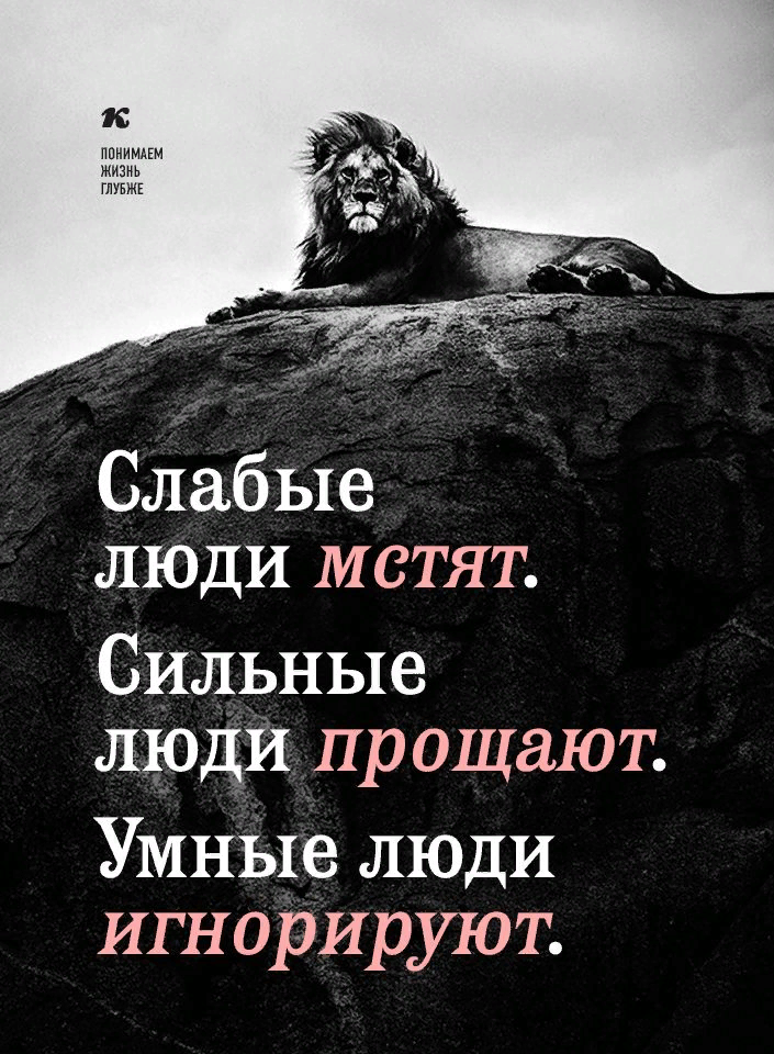 Познавайте, и вы познаете. Двигайтесь, и вы продвинетесь. Изучайте, и вы изучите. Делайте, и вы сделаете. Добивайтесь, и вы добьетесь. Ничего личного, но всё касается лично вас. Нет ничего, чтобы вас тормозило, если вы сами не будете тормозом для себя. Возврата к старому не будет, и перемен не избежать. Добра и зла нет, но есть то, что человек сам для себя или ему помогают, определить, как добро или зло. Внутренний враг опасней и коварней внешнего, но нам навязывают внешних врагов. Чем больше роботов, тем больше ненужных и лишних людей, которые системе просто не нужны. Цель создает смысл жизни. Бесцельная жизнь бессмысленна. Порядок в голове, порядок в жизни. Бардак в голове, бардак в жизни. Разделение людей происходит через наличие или отсутствие чего – то у кого – то. У кого – то есть деньги, у кого – то их нет. И так всё по аналогии. Живите здесь и сейчас. Прошлое уже было, настоящего нет, оно транзитно, а будущего может не быть. Если что – то делаешь, концентрируйся на деле, не