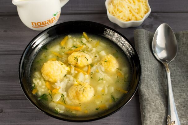 Густой рисовый суп на благоуханном курином бульоне с нежными сырными клецками выходит весьма смачным и сытным. Приготовить его можно просто и стремительно. Всего через полчаса у вас будет горячее блюдо. Описание изготовления: Рецепт, как приготовить венгерский суп с сырными клецками, понравится всем любителям сыра. Клецки из твердого сыра получаются весьма нежными и смачными. Сыр жестких видов выбирайте по собственному вкусу. Суп можно варить на мясном либо овощном бульоне. Предназначение:
