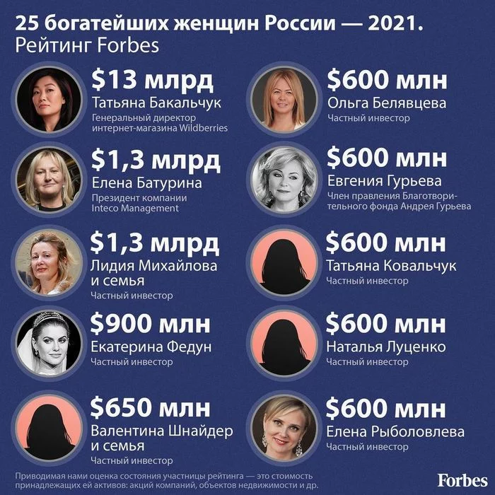 Недавно вышел ежегодный #рейтинг самых состоятельных женщин России 2021 г. по версии #forbes