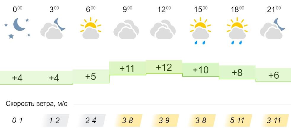 Днем температура воздуха прогреется до +12°С. Утром и вечером прохладнее – от +5°С до +6°С.