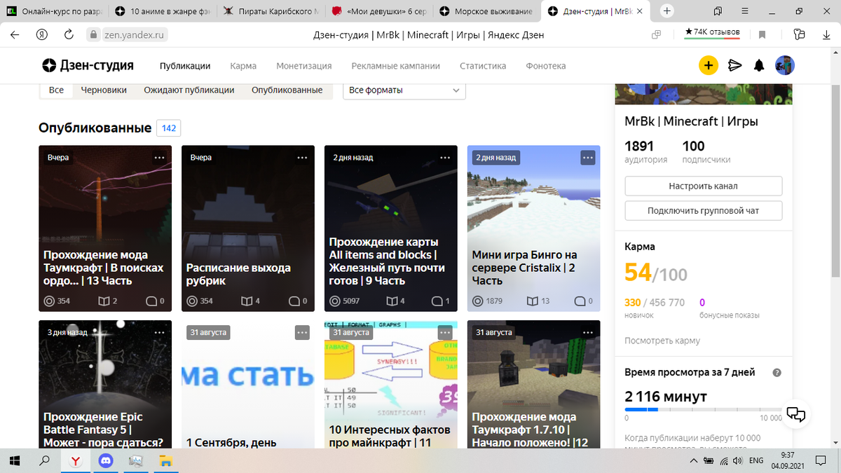 Всем привет! В этой статье поговорим о канале! Недавно на нём стукнуло 100 подписчиков, за что я очень-очень благодарен Вам! И надеюсь, что мы не остановимся на сотне подписчиков, а продолжим покорять просторы дзена! Может, это и не большое число - но всё же радость от него гигантское! Отдельная благодарность Хотелось бы выделить тех людей, которые *поддерживали* мою деятельность на дзене. Лайкали, часто комментировали и вообще находятся тут очень давно) Фисташка - Спасибо за то что писала и продолжаешь писать комментарии. Благодаря тебе я начал чувствовать, что мои писанины хоть кому то интересны! А первый комментарий Фисташки (Если не ошибаюсь) был 21 день назад. То есть на 24 день существования канала! (14 Августа) Валера Майнкрафторский - скорее всего первый или один из первых подписчиков, которые с самого начала и досех пор со мной! Первый его комментарий был аж 29 июля, если посмотреть по другим комментариям - это самый первый. Спасибо! Дождливый Гуливер - Аналогичная ситуация,