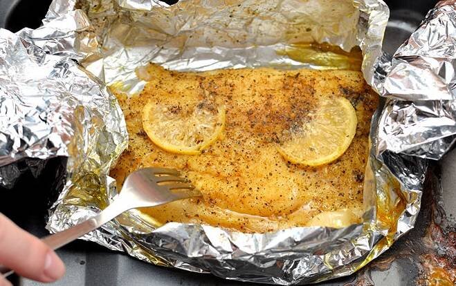 Запеченный в духовке минтай получается очень нежным и вкусным. Минтай – отличное диетическое блюдо и способ разнообразить питание тех, кто сидит на диете или постится. ИНГРЕДИЕНТЫ Как приготовить 1. Включите духовку нагреваться на 200 градусов. 2. Филе минтая промокните бумажным полотенцем. Оно должно быть сухим. 3. Приготовьте два больших листа фольги, каждый лист согните напополам. 4. Филе выложите в центр фольги. 5. Посыпьте рыбу специями, солью, перцем. 6. Сливочное масло нарежьте тонкими пластинками и распределите по филе. Лимон нарежьте кружочками и положите сверху. 7. Заверните плотно фольгу. Шов должен быть сверху. 8. Филе минтая в фольге выложите на противень. 9. Запекайте рыбу в разогретой до 200 градусов духовке в течение 20 минут. 10. Готовый минтай в духовке будет мягким и сочным. Приятного аппетита!