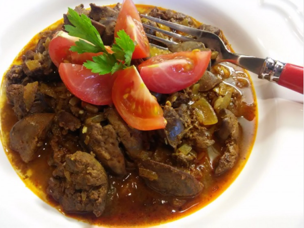 Куриная печень быстрого приготовления - ингредиенты 800 г куриной печени 4 столовые ложки оливкового масла 2 большие луковицы 5 зубчиков чеснока (по вкусу) для заправки: перец красный молотый, раска цельная (измельченная), перец черный молотый, майоран сушеный, соль Куриную печень промываем, сушим и удаляем. Нарезать более мелкими кусочками. Также можно тушить целые куски. Это зависит от того, как мы на вкус. Лук мелко нарезать. Подготовим сковороду большего размера с пледом. Обжарить лук на масле до однородного состояния. Добавить печень, посыпать молотым красным перцем. Мы приправляем. Солим до конца. Обжарьте печень, чтобы она втянулась. Накройте крышкой и тушите около 5 минут. Печень выделяет собственный сок. Раскройте сковороду, добавьте измельченный чеснок и сушеный майоран. При необходимости залейте небольшим количеством воды. Отдыхайте до мягкости. Мы можем загустить соламилом. Посолим. Совет в заключение: жареную курицу подают с рисом на пару, жареным картофелем, а также с хле