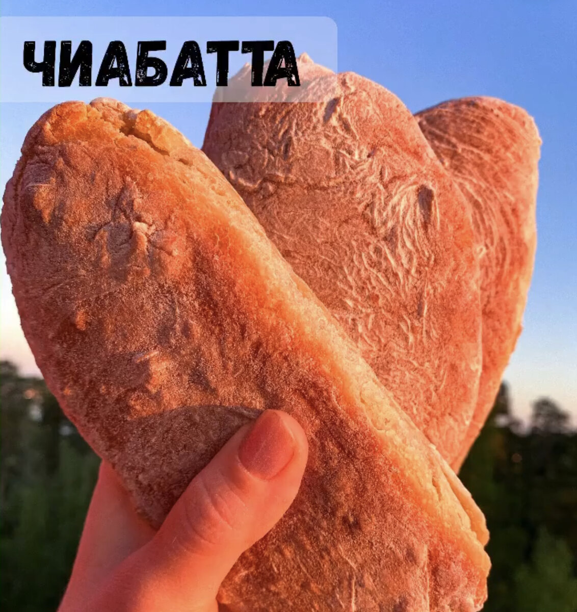 Хлеб Чиабатта без замеса. Очень вкусная чиабатта, воздушная внутри и с хрустящей корочкой снаружи 😋 Идеально подойдет для сэндвичей 😍 Ингредиенты: ✔️Теплая вода - 300 мл ✔️Дрожжи - 1 ч.л. ✔️Сахар - 1 ст.л. ✔️Мука пшеничная - 400 г ✔️Соль - 1 ч.л. ✔️Оливковое масло - 1 ст.л. Приготовление: ✔️Смешать все ингредиенты. Закрыть пленкой и поставить в теплое место для подъёма на 1-1,5ч . У меня это : духовка с включённой лампочкой. ✔️Далее приплывём стол мукой , выкладываем тесто, можно его слегка округлить. Сверху тесто слегка присыпаем мукой , разделяем на три части. ✔️Перекладываем на пергамент с бортиками (просто подогнула часть пергамента). ✔️Духовку разогреваем до 200 град. В поддон наливаем кипяток и ставим вниз духовки. ✔️Чиабатту ставим в духовку и печем с поддоном 25 мин. Потом вынимаем поддон с кипятком и печем ещё минут 10-15 до золотистой корочки . Время зависит от Вашей духовки . Готовьте с удовольствием и приятного аппетита 🤗 Рецепт с ❤️ от Насти