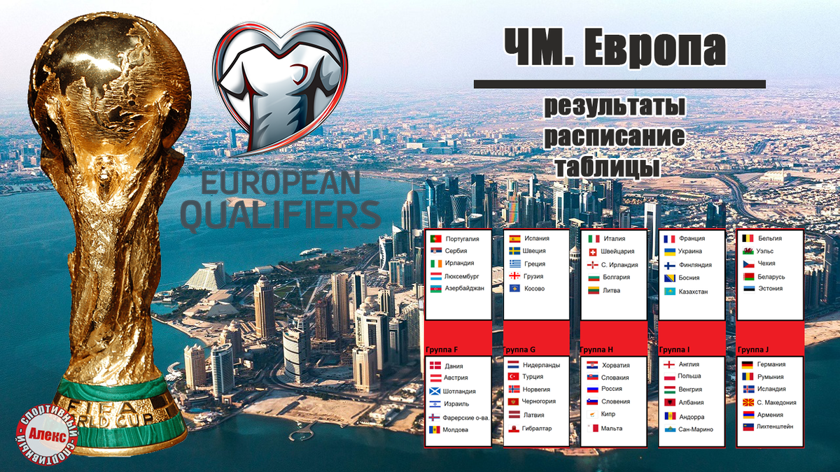 Чемпионат мира по футболу 2022. Европа. 5 тур (группы D, A, F, G, H) Результаты, таблица и расписание.