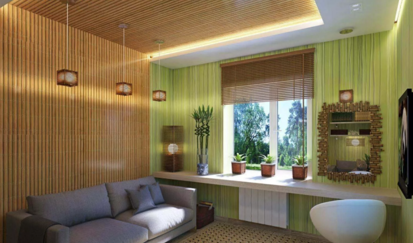 Тростниковые обои представляют собой многослойное полотно, состоящее из трёх слоёв. Все существующие на сегодняшний день технологии поклейки тростникового полотна очень схожи между собой. Их отличает только способ фиксации, и, естественно, время на поклейку. Но эти различия в основном касаются времени высыхания клея и времени на высыхание полотна. Наиболее быстрый способ поклейки: Рулон аккуратно сматывается в рулон. Тростник распускается и обрезается до размера стены. На стену накладывается малярный скотч. Клеим рулон и начинаем разматывать его, одновременно разглаживая полотно. Таким образом, получаем ровную стену без складок и заломов. В качестве основного слоя используются: — тростник; — сизаль; — бамбук. Декоративная прослойка выполняется из следующих материалов:— бумажное полотно; — хлопковое полотно; -льняной холст. Монтаж тростниковых обоев не займёт много времени, а результат приятно удивит. Если вы решили использовать данный вид покрытия, то вам предстоит решить, какой тип
