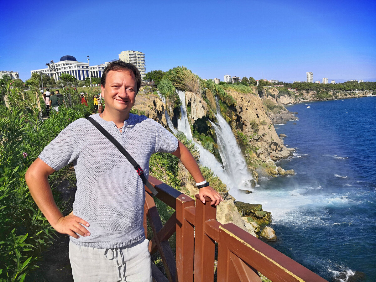 😀 Вот сбылась ещё одна моя мечта связанная с путешествиями. ⠀⠀ 👉 На фото за мной водопад Нижний Дюден в городе Анталья. На следующий фотографии он более детально. ⠀⠀ 🇹🇷 Много раз прилётал в Турцию, а до этого места не добирался! Причём помню, что как-то вылетая на самолёте из аэропорта в Анталье получилось так, что тот пролетел как раз над водопадом и достаточно низко, что можно было всё хорошо рассмотреть. А вот и я рядом с ним! Вот ещё фотография. Кстати, самолёты летают над водопадом постоянно. Каждые несколько минут кто-то идёт на взлёт как раз над водопадом. Аэропорт расположен всего в нескольких километрах от него. * ⠀ ⭐ Помню как очень и очень давно смотрел фотографии этого водопада в интернете и не мог поверить, что он правда в Турции, что он правда существует, а не фотомонтаж. Сейчас сам готов подтвердить, что это не фотомонтаж! Он правда есть. Я его видел, трогал, слышал. ** Как добраться? Если жить непосредственно в Анталье то добраться до него вообще не проблема. Он
