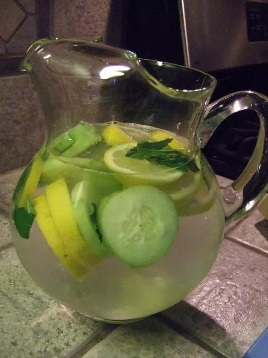 Здравствуйте дорогие подписчики и гости канала Я решила поделится с вами рецептами диетических блюд Начнём Вода Сасси для похудения Продукты : Вода Фильтрованная. - 2 литра Лимоны - 2 штуки Огурцы - 1 штука . Мята - 12 листков. Калорийность в 100 граммах блюда: Калорийность: 3 ккал Белков: 0 г Жиров: 0 г Углеводов: 0 г Приготовление: Воду рекомендуется брать фильтрованную, а ещё лучше родниковую или талую. Рецепт даётся на 2 литра воды, но готовить удобно в з-х литровой банке, так как продукты тоже займут определённый объём. Лимоны, листья мяты и огурец тщательно вымыть. Приготовьте из фильтрованной воды лёд - он пригодится при подаче, особенно в жаркое время. В банке соединить 1 литр воды и сок с 1 выжатого лимона, размешать. Огурец и второй лимон не очищая от кожуры нарезать тонкими колечками. Полусферы с выжатого лимона разрезать на 4 части, они тоже ещё послужат. В лимонную воду добавить ломтики огурца, лимона, и слегка растёртые листочки мяты. Можно добавить 1 ч.л. тё