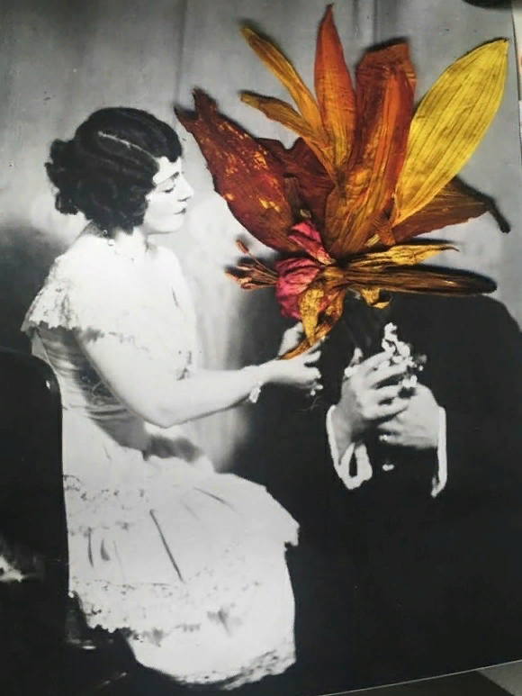 Для меня эта работа — о памяти.⠀ Словно прекрасный и драгоценный сувенир из неповторимого прошлого, напоминание о том, что все было по-настоящему, хотя уже и нельзя все это снова повторить. Такой яркий нежный цветок, красочный всплеск посреди чёрно-белого снимка — всё это словно воспоминания об ускользающем вчерашнем дне. Он ещё кажется таким объёмным и настоящим, но на самом деле уже принадлежит пространству прошлого, которое уже никогда не вернется. Его место теперь — в гербарии между страниц толстенной энциклопедии или в стопке фотокарточек в бабушкином альбоме. Когда ещё, если не в первые сентябрьские дни показать вам это сокровище. Рассказываю: два месяца назад я заглянула в фотодепартамент и не смогла уйти оттуда без этого снимка. Когда мне его показали, я просто замерла и ахнула, да-да, прямо вслух! Я уже видела этот коллаж в интернете на сайте Фотодепартамента, но это совсем, совсем не то! Шершавая бумага, сочные краски, размер, в конце концов… в общем, меня этот сни