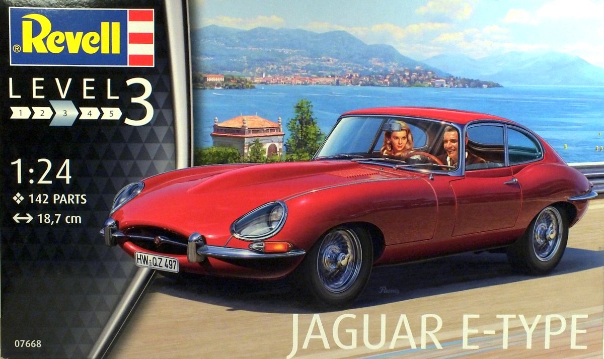 Здравствуйте дорогие читатели Гаража На Полке! В сегодняшнем обзоре, познакомлю вас с новой разработкой фирмы Revell, набором из которого мне предстоит собрать Jaguar E-Type в масштабе 1:24. Впервые сборная модель этого автомобиля, была разработана и произведена, в 1966 году британской фирмой Airfix, а в 1978 году своей разработкой "отметился" и французский Heller, который переиздавал этот набор несколько раз, вплоть до 2015 года. В 2020 году, Revell, разработал собственный вариант модели, который со своими предшественниками ничего общего, кроме прототипа, не имеет и новая разработка Ревелла, я думаю, будет интересна моделистам увлеченным автомобильной тематикой. Как всегда, начну обзор с упаковки. В каталоге Revell, набор значится под номером 07668. Хочу заметить, что существует вариант с другим артикулом – 85-4509, это перепаковка 2021 года для американского Ревелла. Содержимое наборов абсолютно одинаково – отличие, лишь во внешнем виде упаковки. Набор 3-го уровня сложности и сод