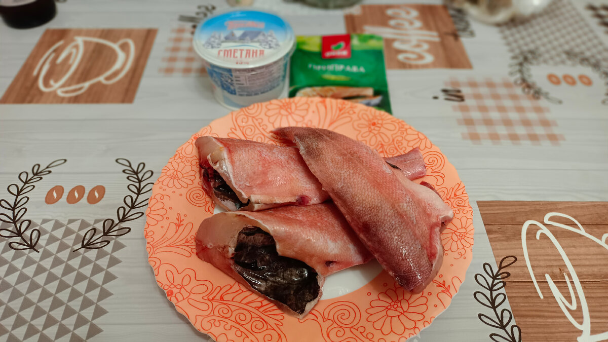 Я взяла замороженного потрошеного окуня, в упаковке 3 шт на 750гр. Сметану и приправу для рыбы. Выложила пол банки сметаны в миску, добавила две столовые ложки приправы, соль и перец. Далее обмазюкала окуня этой смесью и замотала в фольгу. Оставила на 15 минут пропитаться. Потом в духовку на 180градусов, на 45 минут. Достаем , раскрываем фольгу и ещё минут на 15. Готово! Приятного аппетита!