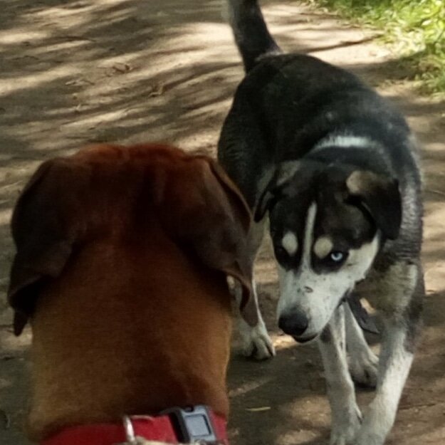 Устав гоняться за риджбеком, веселый пес неизвестной породы бросился ко мне. - Сейчас приставать будет, чтоб погладили! - весело сообщила его хозяйка. Вот это зря. В присутствии своей собаки гладить другую как-то не комильфо. В знак приветствия могу лишь ладонь протянуть, не более того. Смешно звучит, но да - чтоб Золка не приревновала. О собачей верности пишут тонны книг и снимают километры кинопленки. В то же время собачью ревность как-то стороной обходят. А эта тема тоже довольно любопытная. Все собаки ревнуют чужих к своим хозяевам. Это нормальная защитная реакция на внешнюю угрозу. С какой стати позволять кому-то постороннему вламываться в их уютный мирок? Собака обозначает свою позицию предельно ясно. Типа, нефиг претендовать на внимание моего хозяина. Ему есть с кем гулять, играть и о ком заботиться. Выражается это только по разному. Кто-то начинает ластиться к хозяину, пытаясь переключить его внимание на себя, кто-то обозначает границу более радикально. В случае с Золк