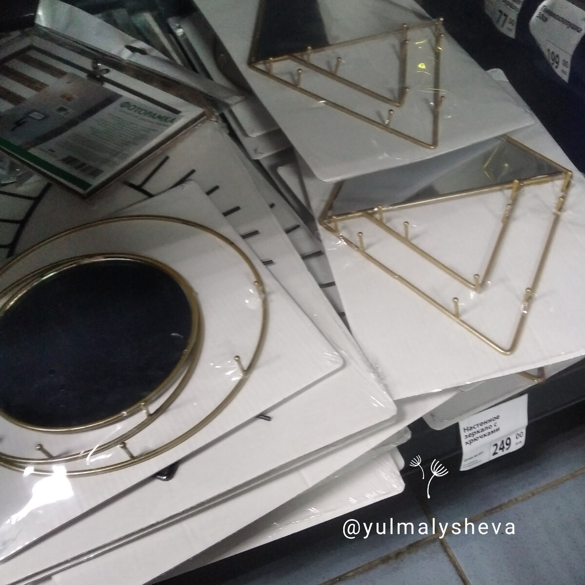 У меня продолжается беспощадная битва с урожаем. А вот банки для складирования урожая - закончились. Так что отправилась я сегодня за ними в #fixprice Помню, летом продавали там симпатичные баночки с замками. Увы, все расхватали. Зато наконец-то появились симпатичные новинки для дома - давненько ничего интересного не попадалось. Показываю, что мне приглянулось. Во-первых, очень много зеркал в тонкой металлической золотой оправе. Разной формы, разных размеров. С крючками - можно повесить украшения, ключи или другую мелочёвку. Цена - 250 рублей. Но лично я бы их использовала для создания подобной композиции, сгруппировав сразу несколько разной формы. Хочу сделать нечто подобное для дачи, но, разумеется, своими руками. Вообще Fix Prise, видимо, решил продолжить прошлогодние лофто-золотые коллекции, во всяком случае сейчас там представлено довольно много товаров в таком духе и стиле. Например, доска-подставка для записей. Или вот такой поднос. Идея очень симпатичная, но исполнение