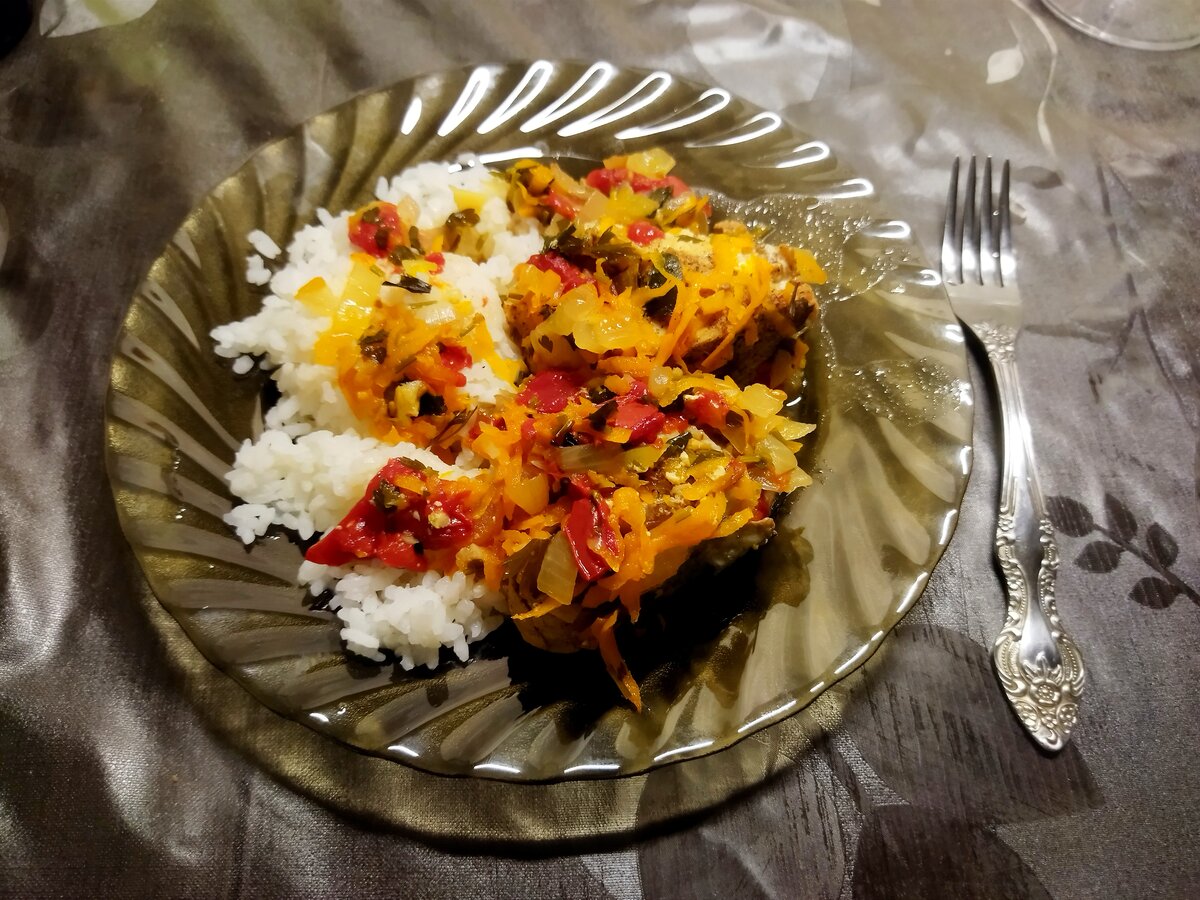 Пикша — морская рыба семейства тресковых. Рыба вкусная, но суховатая, поэтому при приготовлении важно добавить ей сочности, а не высушить ещё сильнее, так что в горле застрянет. Делюсь отличным рецептом приготовления пикши с овощами. Рыбка будет сочной и вкусной. Время приготовления 1 час 20 минут. Ингредиенты: Пикша — 2 шт. (1,2 кг) Лук репчатый — 2-3 шт. Помидор — 1-2 шт. Морковь — 1 шт. Чеснок — 2 зубчика Паприка — 1 ч. ложка Мускат — 1 ч. ложка Соль — по вкусу Лимон — половинка Перец чёрный молотый — по вкусу Масло растительное — для смазки формы Масло сливочное — 50 г Петрушка — небольшой пучок Процесс приготовления. Для начала разделайте рыбу: очистите от чешуи, уберите остатки внутриностей и черную плёнку в брюшной полости (во избежании горечи), обрежьте плавники. Пикша продаётся без головы и уже потрошоная, что упрощает разделку. Тщательно промойте тушки, нарежьте на порционные куски и отправьте в глубокую посуду. Посолите, поперчите по вкусу. Добавьте паприку и мускатный о