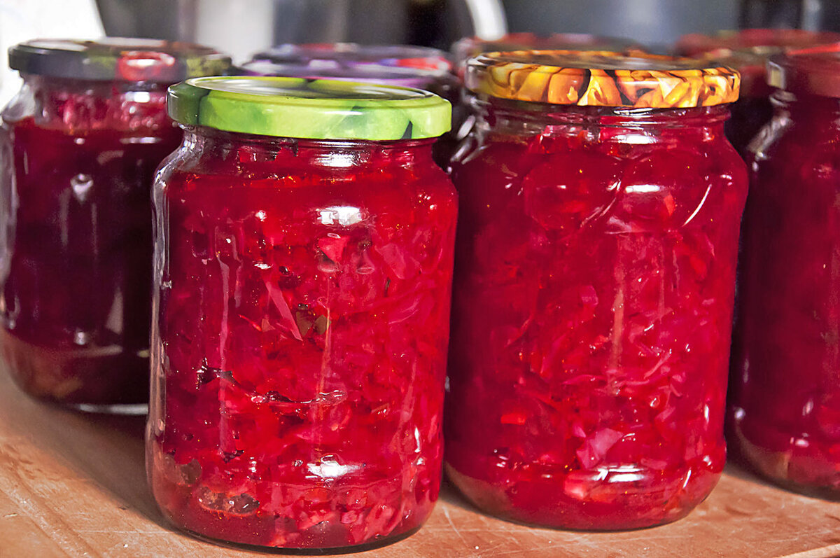 Время приготовления: 120 минут Все овощи помыть. Свеклу натереть на терке для корейской моркови (может, будет мелковато) либо нарезать соломкой (что трудоемко, безусловно). Масло надо раскалить и быстро бросить свеклу, тушить 30 минут, помешивая. Я убавляю огонь до среднего.Помидоры, перец прокручиваем на мясорубке отдельно. Добавляем к свекле сначала помидоры, тушим 30 минут, потом перец - тушим 20 минут. Выдавливаем через пресс чеснок, добавляем соль и тушим 5 минут. Сахара нет в рецепте, но по опыту скажу - если свекла не очень сладкая, можно добавить по вкусу (остудите в ложке, попробуйте, если что, добавьте сахар). Добавляем уксус, размешиваем. Или можете в каждую банку капнуть уксус.В простерилизованные сухие банки разложить салат в горячем виде и сразу закатать. Поставить вверх дном, накрыть одеялом на сутки. У меня, как видите, крышки под закатку. Вероятно, можно делать и под винтовыми крышками, но я не делал, поэтому не могу сказать, как будет храниться. Эти банки стоят вне х