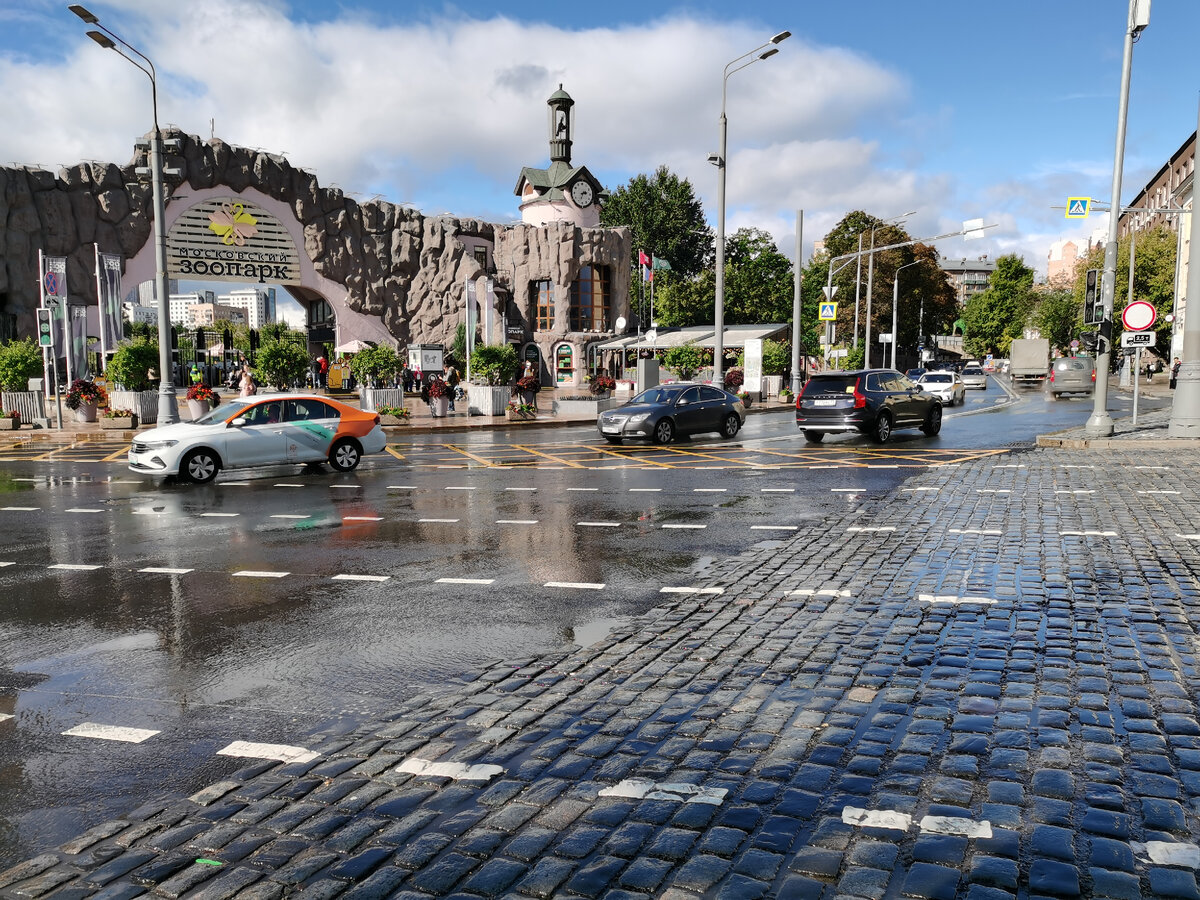 Начнём маршрут от улицы Баррикадная. Её очень любят туристы, а вот водители неохотно направляют сюда свои транспортные средства. Все дело в том, что Баррикадная - одна из немногих московских улиц, половина которой покрыта брусчаткой.