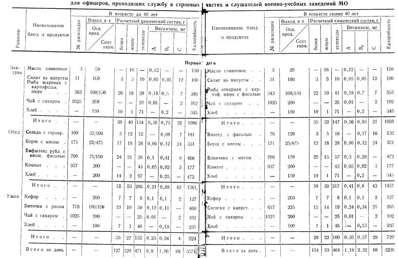 Конечно, никто не запрещал генералам ходить в рестораны. Но сегодня речь будет о другом. Основные положения организации рационального питания генералов и офицеров Советской Армии и Военно-Морского Флота Ах, ну почему эти меню так унылы? Сыр на завтрак у строевых – раз в неделю. Все. Ни тебе окорока, буженины или ветчины, выпускаемых пищевой промышленностью Союза. Колбасы – и той нет. Ни тебе российского или там костромского сыра, а ведь тогда это был именно сыр, зрелый. настоящий. Неа, не выслужили офицеры, цвет армии. А вот меню штабистов, это уже не гарнизоны, это города, причем, в основном областные центры Салаты отнюдь не ежедневно. А вот сезонные меню столовых военторга. тут чуток поприятнее Офигеть, салаты каждый день – какая роскошь! А сыр все так же – раз в неделю. Мордой товарищи советские офицеры не вышли или как? Ну да бог с ним, с сыром. Вот диетические меню для старичков Пятница Воскресенье Охренеть, господа адмиралы и генералы выслужили себе кусочек докторской колбасы раз