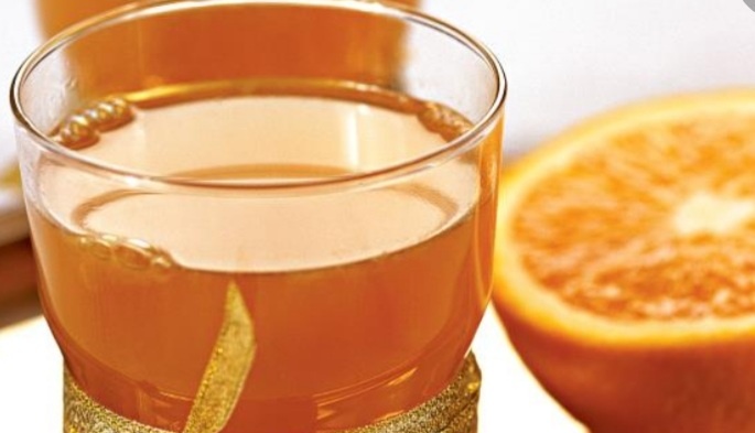 - Апельсиновую смесь соедините с чаем и изюмом.