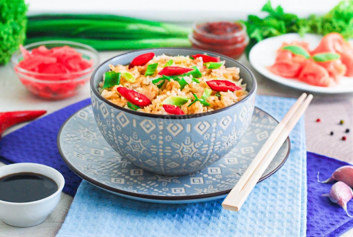 3 рецепт "РИС С СОЕВЫМ СОУСОМ НА СКОВОРОДЕ"