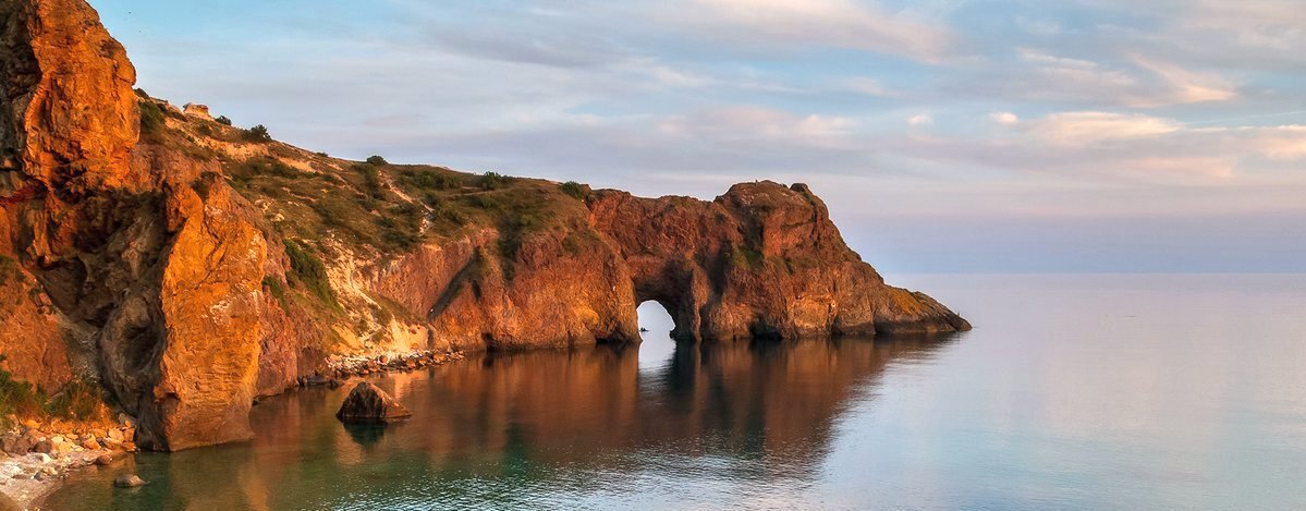 Количество фотографий сделанных на фоне этого грота наверное несчесть. И это неудивительно, ведь трудно переоценить красоту данной локации. Находится это место на немалоизвестном мысе Фиолент, в окрестностях Севастополя. Сам мыс является началом Главной гряды крымских гор и сформирован породами вулканического происхождения, что во многом и предает ему такую особенную живописность. Фиолент разбит скалами на множество различных пляжей, о некоторых я уже писал ранее. Чтобы добраться к Гроту Дианы, вам необходимо доехать до остановки Каравелла, а оттуда идти к морю пешком. На протяжении пути будут указатели. Совсем недавно у грота сделали прекрасную смотровую, где можно хорошо отдохнуть за чашечкой кофе. Также стоит отметить, что вам придется преодолеть довольно долгий спуск по ступенькам, но на протяжении всего спуска имеются зоны отдыха с удобными лавочками, с которых открывается неповторимый вид. Добравшись до самого пляжа, вы сможете расположиться как на лежаках, так и на мелкой галь