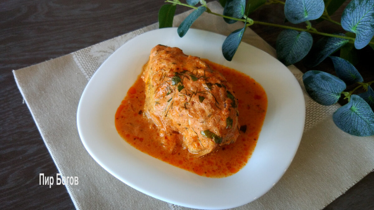 Спешу поделиться с вами вкусным блюдом на второе. Куриное филе можно очень быстро и без лишних хлопот приготовить на праздничный стол. Оно получается очень нежным и немного острым. По желанию готовое блюдо можно присыпать зеленью, сыром или просто полить соусом. В соусе почти не чувствуется лук, так как он почти весь разваривается и добавляет густоты соусу. Если такое блюдо приготовить без лука, то соус получится немного жидким. *** Подробный рецепт можно увидеть в видео на моем канале здесь или на канале YouTube Пир Богов вот здесь 🥘. Еще там есть много вкусных рецептов. 🥗🥧Подписывайтесь))) 😉 *** Состав: 1 кг (4 шт) куриного филе 300мл томатного густого соуса 200мл сливок 20% 3 луковицы 3-4 зубчика чеснока 30гр сливочного масла Растительное масло Соль, перец, уцхо-сунели Зелень Способ приготовления: Филе помыть и обсушить бумажным полотенцем. В чаше смешать специи и оливковое масло. Филе обмазать маслом со специями и отставить в сторону на 10 минут. Лук нарезаем тонко полукольцами