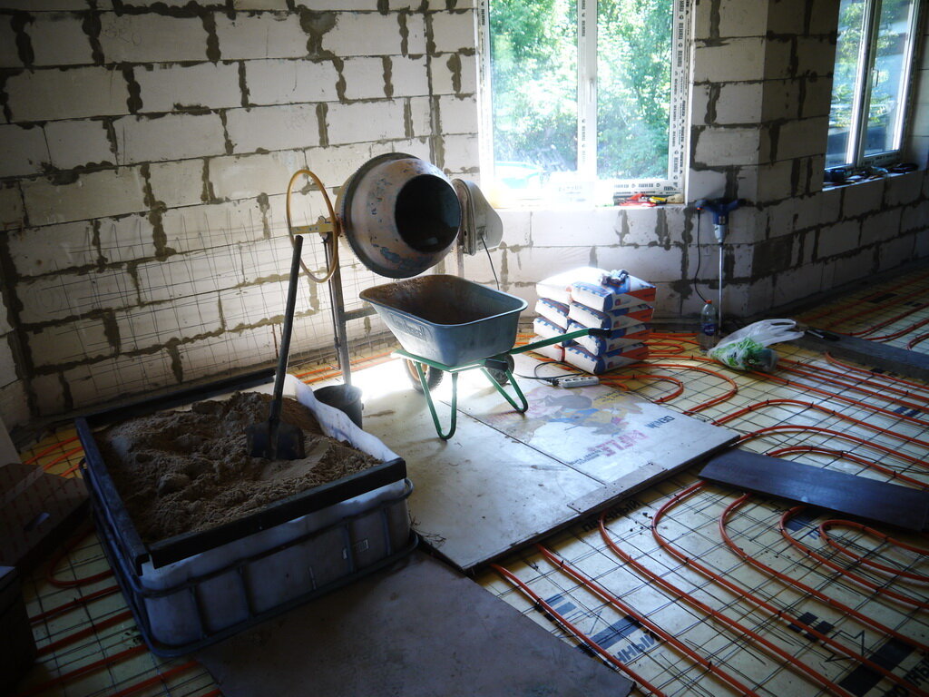 Укладка полусухой стяжки на тёплый водяной пол своими руками.