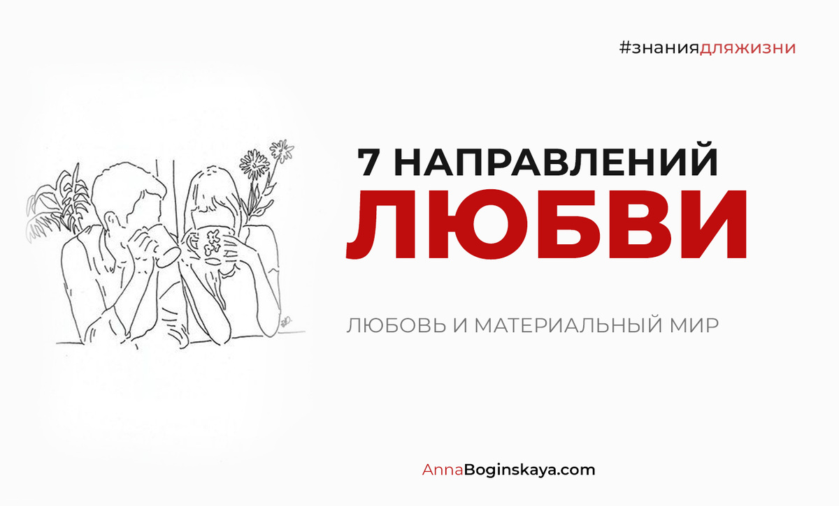Когда мы говорим о безусловной любви, речь идет просто о чувстве. О чувстве без материи. Когда говорим об отношениях, их проявлении в материальном мире, принято различать семь направлений любви: Высшее проявление развития личности человека – создать во всех этих направлениях такие отношения, которые будут искренне приводить вас в состояние восхищения, спокойствия и гармонии. Это предполагает, что во всех семи направлениях вы испытаете любовь, которая вас наполняет, где вы отдаете любовь и получаете ее взамен, где между партнерами есть взаимно наполняющийся сосуд. Такие отношения приносят вам ощущение истинного счастья. Не всем из нас от рождения дано быстро достичь гармонии во всех семи направлениях любви. В большинстве случаев нас преследуют заложенные с детства программы, чувства страха и вины. Но мы способны к изменениям благодаря той свободе выбора, которая дана нашей душе при рождении. И мы можем перекроить свое мышление и выработать новую модель восприятия, получить знания, котор