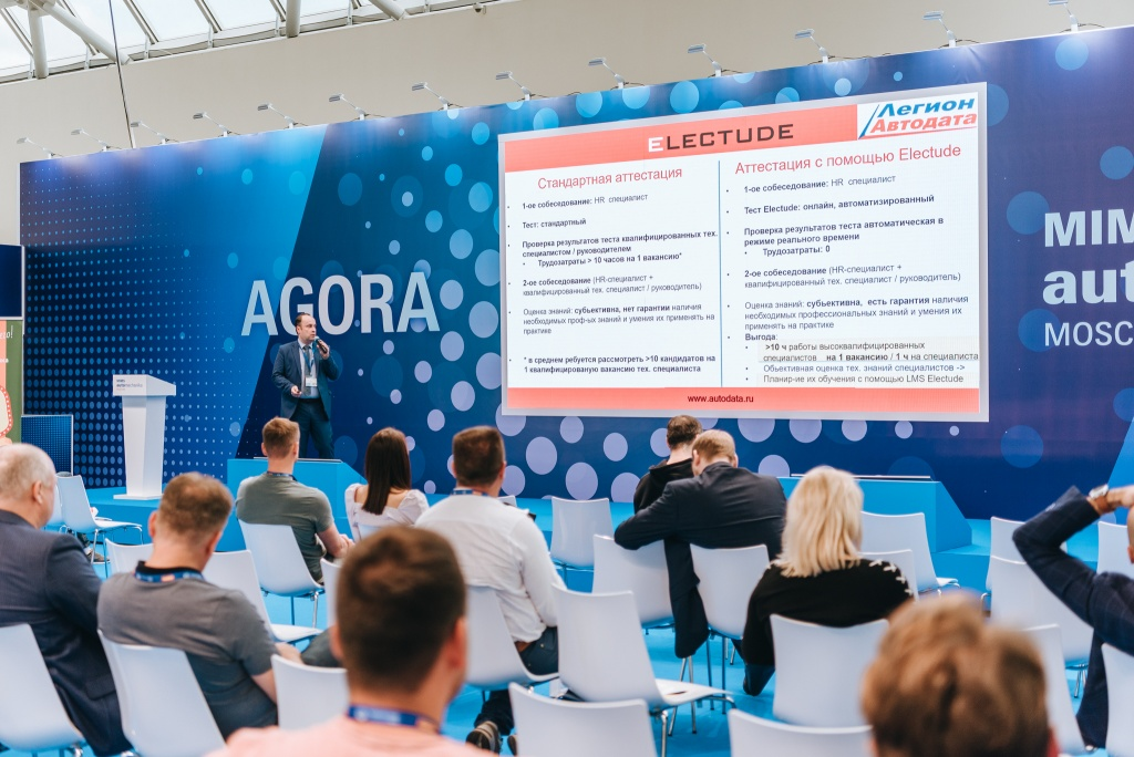 Международная выставка запасных частей, автокомпонентов, оборудования и товаров для технического обслуживания автомобиля MIMS Automechanika Moscow - это самая крупная выставка автозапчастей, автокомпонентов и оборудования для технического обслуживания автомобилей в России и странах ближнего зарубежья. Менеджер по развитию бизнеса "Легион-Автодата" Андрей Глембоцкий провел презентации LCMS ELECTUDE "Автоматизация обучения и аттестации автомобильных специалистов" на конференц-площадке «АГОРА» "ПО и Digital решения для СТО", проводившейся в рамках выставки MIMS. Преимущества ELECTUDE как платформы