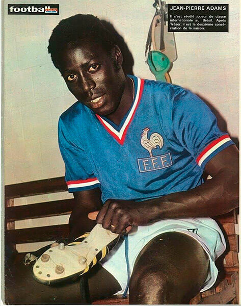 Именно в качестве центрального защитника Адамс в 24 года получил первый вызов в сборную Франции, став одним из первых темнокожих футболистов в той команде. Тогда французы оказались в периоде безвременья и были довольно средней командой, но достижений футболиста это не отменяет. «Он обладает природной силой, очень силен, полон решимости, но в то же время и доброй воли», – говорил про него капитан национальной команды Анри Мишель.