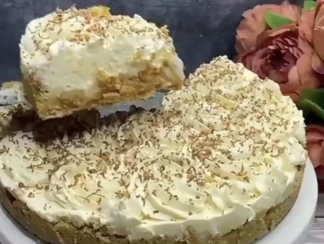 Очень нежный, вкусный и воздушный торт! Ингредиенты: Печенье (у меня юбилейное) - 300 гр Сливочное масло - 150 гр Вареная сгущенка - 1 банка Бананы - 3-4 шт Сливки 33% - 400 мл Сахарная пудра - 100 гр Творожный сыр - 300-350 гр Шоколад для посыпки Приготовление: 1. Печенье измельчаем в блендере. Смешиваем с растопленным сливочным маслом. Выкладываем в форму (20-26 см) и утрамбовываем руками. Отправляем в холодильник на 15-20 мин 2. Далее аккуратно выкладываем сгущенку, затем бананы 3. Для крем чиз: В чашу миксера добавляем очень холодные сливки (венчик и ёмкость в которой взбивать положите на 20 мин до использования в морозилку), сахарную пудру, творожный сыр. Взбиваем до крепких пиков 3-5 мин 4. Крем можно поделить на 2 части и украсить узорами из кондитерского мешка (можно этого не делать!)Можно просто выложить весь крем ровным слоем. В нашем варианте я ещё украсила из кондитерского мешка 5. Посыпаем тертым шоколадом