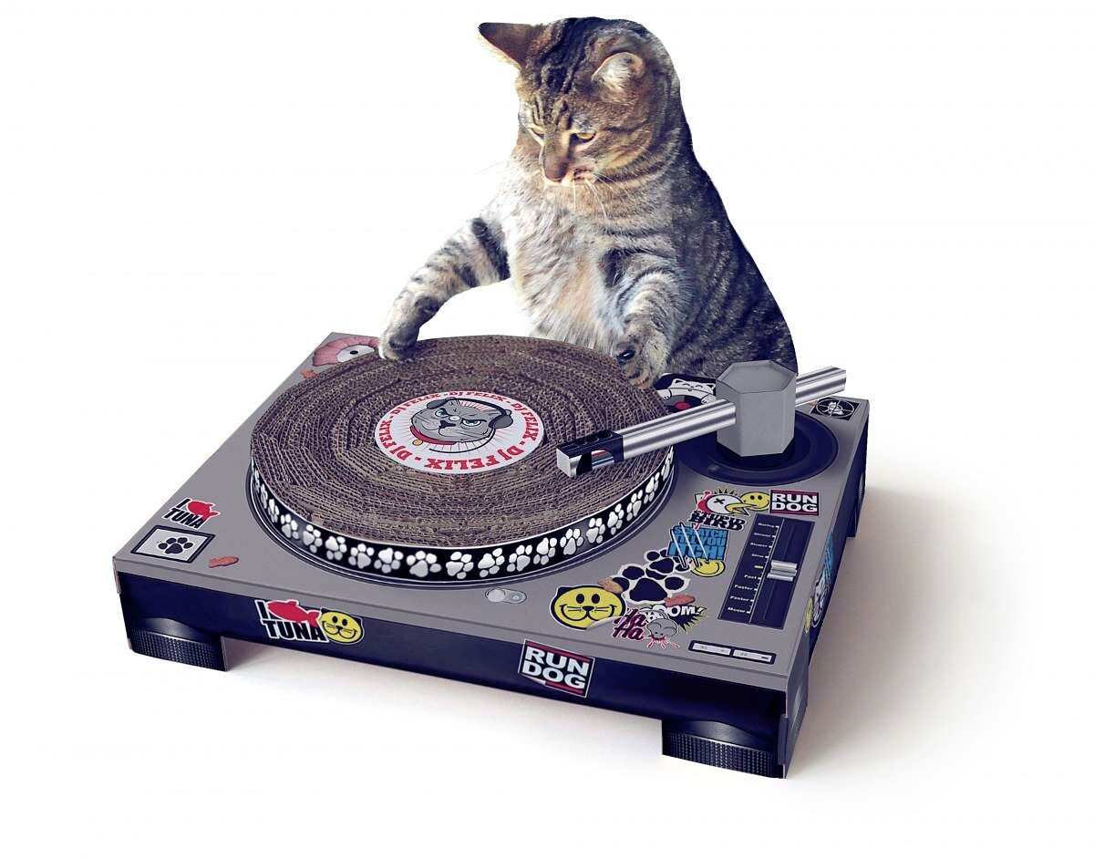 Наша подборка необычных игрушек, предметов, удивительных товаров для Вас и Ваших домашних любимцев может пригодиться для того, чтобы внести яркие краски в жизнь, и даже упростить ее! 1. Когтеточка в виде диджейской пластинки Желаете немного повеселиться? Подарите своему любимому котику когтеточку в виде диджейской пластинки. Котика обязательно заинтересует этот шелестящий предмет, идеально подходящий для того, чтобы заточить свои острые коготки. А Вы еще не один час захотите понаблюдать за ним! Когтеточка в виде диджейской пластинки идеальный подарок для Вашего котика, если Вы долго думаете, чем же его удивить и порадовать! 2. Напальчники "Кошачьи лапки" Очень странная игрушка для котиков. Эти латексные напальчники, делают ваши пальцы похожими на крошечные лапки котика. Как указывает производитель, нужно быть предельно аккуратным во время игры с домашним любимцем, так как реакция животного непредсказуема! 3. Худи с отсеком для обнимашек вашего питомца Такая необычная одежда подойдет