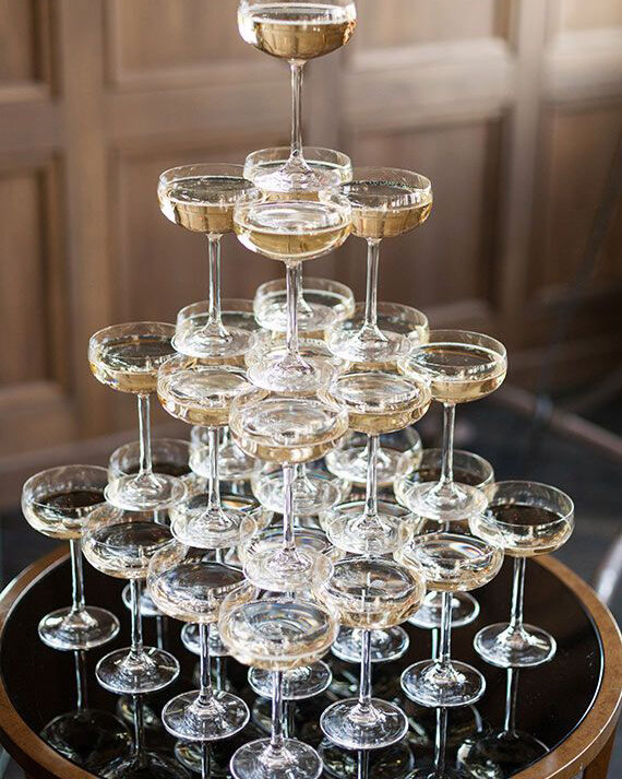 Любое крупное мероприятие будет запоминающимся и атмосферным, если оно грамотно наполнено "вкусными" деталями и элементами, формирующими общую картину. А применительно к свадьбе можно сказать, что без подобных нюансов торжества и вовсе не получится. Конечно, через десять лет после свадьбы вы вряд ли ответите на вопрос, какой на вашем празднике был десерт, или как были украшены места гостей, но важность деталей совершенно не в том, чтобы остаться в памяти навсегда, а для того чтобы вы и ваши гости помнили ту атмосферу и ощущение от торжества, которые было создано с помощью мельчайших деталей. К таким мелочам относится весьма популярное свадебное шоу - пирамидка из шампанского. Конечно, это явление далеко не новое, многие даже могут отнестись к ней как к пережидку советского прошлого. И будут правы, но лишь отчасти. Все зависит того, в каком виде пирамида будет исполнена. Если это безвкусные некрасивые бокалы на столе с кружевной скатертью, пестрящем разнообразием деликатесов, и украшенн