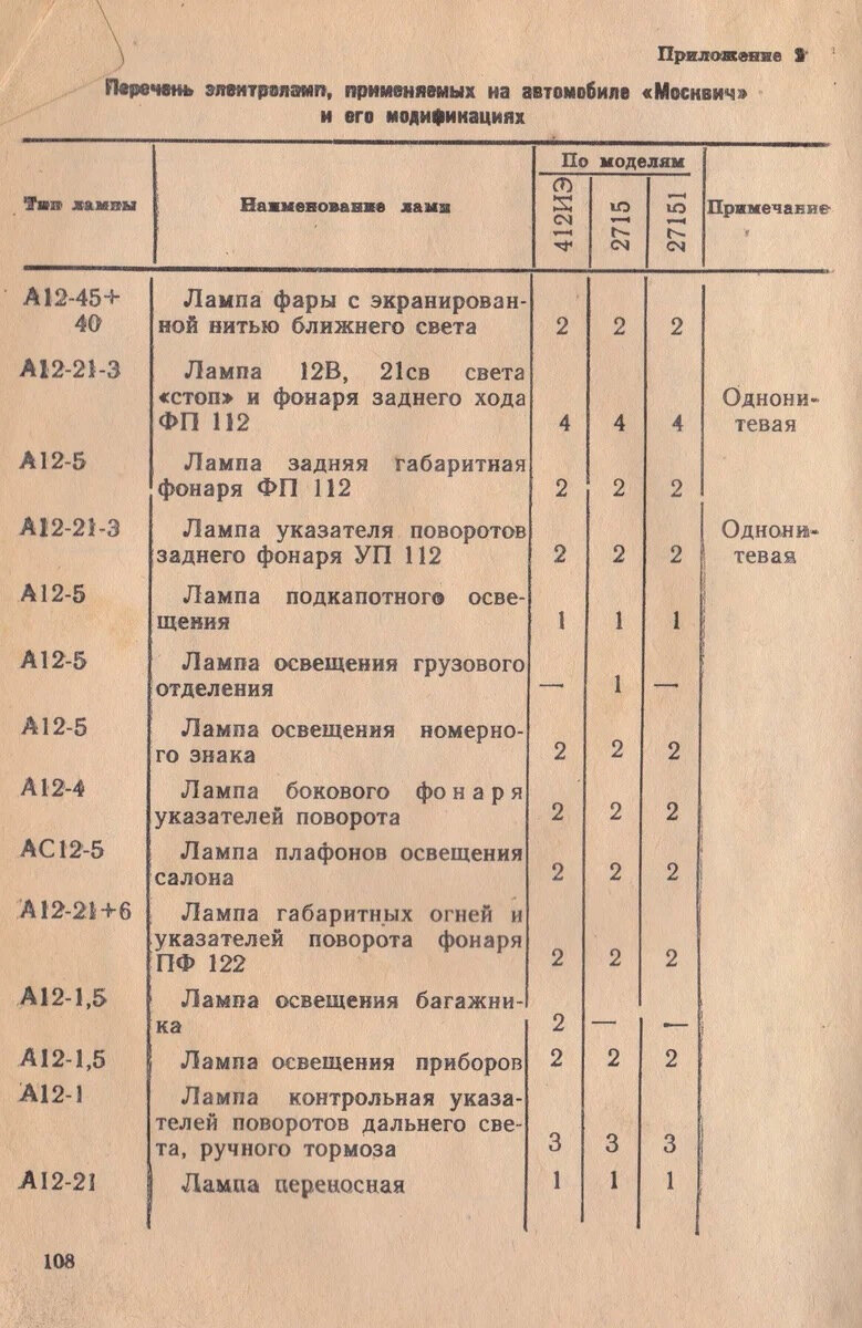 Всем привет уважаемые читатели моей статьи. Продолжаем изучать работу приборов освещения и коммутации ранних автомобилей Москвич и ИЖ 412 Как я уже говорил ранее, в этих автомобилях отсутствует подключение фар через реле. А цепи приборов освещения защищает 20-ти амперный биметаллический предохранитель. Попробуем произвести его расчет по запасу мощности, используя данные о типах и количестве ламп из руководства по эксплуатации: 1. Учитываем что лампы указателей и повторителей поворотов, контрольная лампа включение указателей поворота подключаются через реле, следовательно в расчете не будут учитываться. 2. Габаритные огни подфарников ПФ 122 включатся только отдельно от ближнего или дальнего света, поэтому их в расчет не берем. Конечно, после рестайлинга 1981 установят другие передние габариты работать они будут совместно с варами, но и мощность у них будет меньшая, всего 10 Вт. ближний свет 40+40=80 Вт;