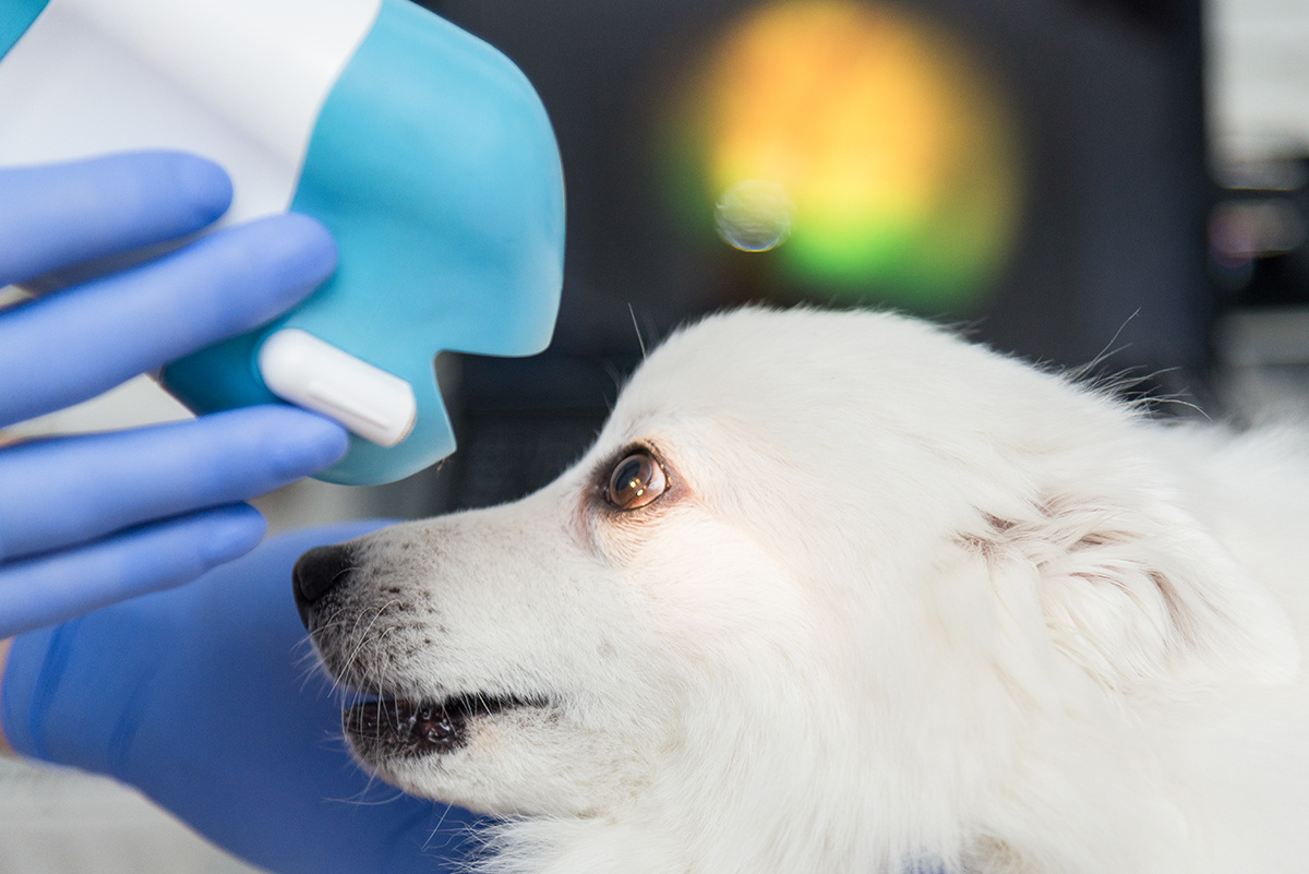 Ультразвуковое исследование глаз – это визуальный метод диагностики, применяемый в ветеринарной офтальмологии, с помощью которого исследуют состояние тканей и структур глаза при помощи ультразвуковых волн. Данный вид исследования не предполагает введения каких-либо контрастных жидкостей в глаз и его ткани, а также не нарушает целостность контактируемых тканей. Для чего применяют УЗИ глаз? Применяют данный метод исследования в случаях: Преимущества данного метода исследования заключаются в его высокой чувствительности. Обследование можно проводить животным многих видов: собакам, кошкам, грызунам, птицам и т.д.