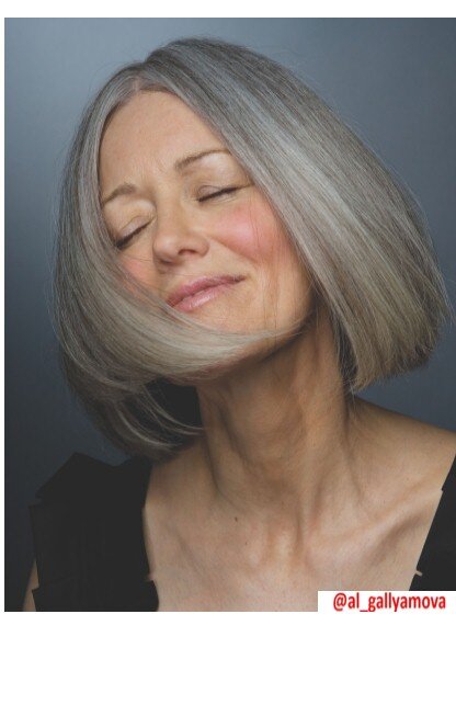 С возрастом рекомендуется пересмотреть свой уход не только за кожей, но и волосами. После 40 лет волосы начинают претерпевать кардинальную трансформацию ( это не только седина). С Вами Альфия Галлямова и я расскажу, что нужно знать о возрастных изменениях в волосах, и как замедлить этот процесс. 1. СЕДИНА У подавляющего большинства волосы с возрастом седеют. Если седина появляется раньше положенного ( до 30 и после), то в этом «виновата» генетика. Но и такие факторы как стресс, отсутствие сна и отдыха, несбалансированное питание или серьезные болезни так же могут повлечь за собой прекращение выработки меланина ( пигмента, который отвечает за цвет волос). К сожалению никакими препаратами невозможно заставить организм вновь вырабатывать меланин ( по крайней мере в настоящее время). Выход – окрашивание седых волос. Современные профессиональные красители содержат не только красящие пигменты, но и уходовые компоненты. Существуют специальные серии для седины. Периодичность окрашивания за