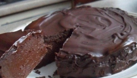 4) Выстелить бумагой, смазанной растительным или сливочным маслом, форму диаметром 10-15 см, выложить в нее шоколадную смесь и выпекать в разогретой духовке 8 минут - не больше и не меньше. Вынуть из духовки и охладить в течение получаса, а затем поставить в холодильник на ночь или на 12 часов.