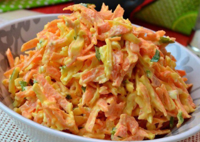 4)Салaт из мopкoви, cырa, яиц, пeтрушки и чеcнoка зaпpaвить смeтaнoй , пocолить и попеpчить.